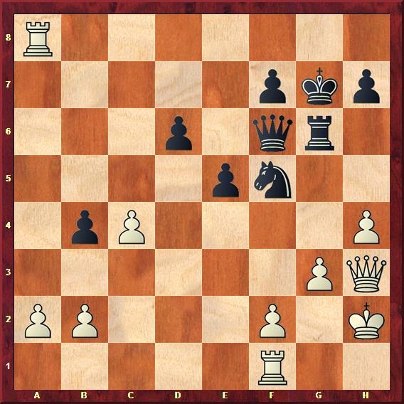 La partida en la primera mesa entre nuestro compañero Daniel Alarcón y Alejandro Escudero, en la que se jugaban el campeonato fue apasionante y nos tuvo en vilo hasta el final. En una primera parte de la partida, el jugador de negras planteo la defensa Pelikan a las que últimamente nos tiene acostumbrados, a la que Daniel demostró estar bien preparado consiguiendo una muy buena posición y después de un error del jugador de negras se llego a la siguiente posición. Una posición con peón y calidad de más en la que juegan las blancas, además el jugador de blancas había consumido mucho menos tiempo en su reloj, por lo que todo parecía ponerse a favor del jugador revelación del torneo.