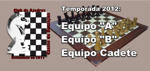 Como nuevas incorporaciones tenemos a Sonia Gil, anteriormente jugando en el poderoso CA Almansa de Albacete; Jose Griñán un viejo conocido beniajanense que vuelve al club de su patria chica, el año pasado en Beniel; Jose Ruiz, jugador histórico de la antigua etapa del club; y Julio Cambronero, del que esperamos buenas partidas en los tableros bajos. Del año pasado se mantienen, Daniel Cánovas, el segundo jugador de los que llamamos históricos y los hermanos Alcaraz, José Juan quien hizo un magnífico 4,5 de 5 en 2011 llevando el peso del tablero 2 frente, y Jesús, miembro de la junta directiva del club y uno de nuestros jugadores más sólidos.
