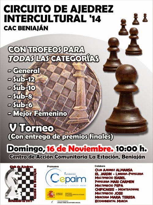 ATENCIÓN: Cambio de fecha del último torneo del Circuito Intercultural de Ajedrez de Beniaján.