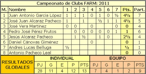 Se acabó el Campeonato Regional por Equipos de la FARM. El pasado sábado, 26 de Noviembre, se disputó la séptima y última ronda en el mismo lugar que se disputará justo ahora hace un año, en Cartagena (Facultad de Ciencias).